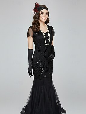 Set Anni Ruggenti Anni 1920 Lunghezza al pavimento Vestito Abito da sera Abiti con accessori Maniche corte Il grande Gatsby Invitato al matrimonio Paillettes Scollo a V Costume Per donna Festa serale