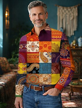 Retrò Vintage Anni '70 Camicia Camicia Aloha Lunghe Hippie Etnico Costume Per uomo Mascherata 4 Luglio Festival Musicale Feste Abbigliamento quotidiano Adulti Camicia