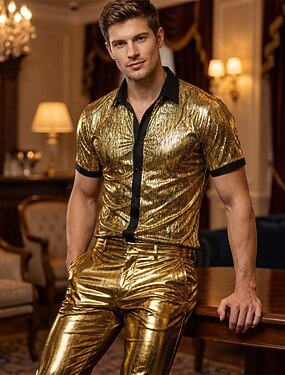 Disco Anni '80 Metallico Lucido Camicia Disco Costume Per uomo Costume di Carnevale Mascherata Evento / Festa Addio al Nubilato Parata dell'Orgoglio Adulti Camicia