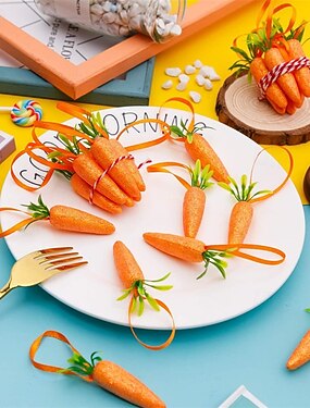 Riempitivi per Cesti di Pasqua Ornamenti Appesi Carota di Pasqua - 12Pz Carote Artificiali in Schiuma Glitter Premium per Decorazione Pasquale