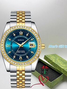 Orologio da uomo di lusso - quadrante blu petrolio tempestato di diamanti, orologio da polso business, orologio analogico impermeabile in acciaio inossidabile bicolore oro con elegante confezione