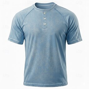 Per uomo Maglia Henley Camicia 100% cotone lavaggio acido Maglietta Manica Lunga Vintage Retrò Vintage Casual Stile Vintage Lavato Henley Casuale Primavera Autunno Tutte le stagioni Marrone scuro