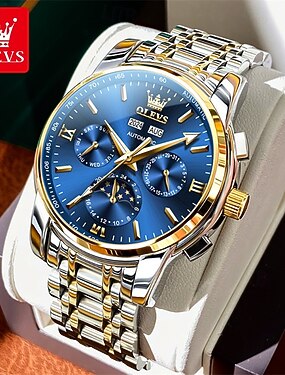OLEVS Da uomo Orologio meccanico Creativo Lusso Moda Affari Automatico a Carica Automatica Fase Lunare Luminoso Calendario Acciaio inossidabile Guarda