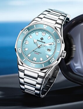 Orologio da uomo al quarzo, orologio analogico da polso impermeabile in acciaio inossidabile con quadrante turchese azzurro, design stile subacqueo con datario ingrandito, orologio da polso alla moda