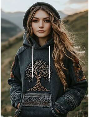 Per donna Felpa con cappuccio Grafico Tribale Casual Manica Lunga Con Cappuccio Top Regolari Casuale Abbigliamento da sera Streetwear Grigio scuro Primavera Autunno Inverno