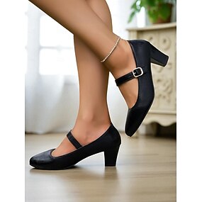 décolleté Mary Jane nere classiche da donna anni '50 con cinturino alla caviglia, eleganti scarpe con tacco a blocco per ufficio, feste e uso quotidiano