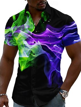 Per uomo Illusione ottica Fiamma Color-blocking Camicia Camicia con Bottoni Camicia casual Manica Corta Moda Casual Abbigliamento casual alla moda Vacanza Primavera Autunno Collo ripiegato Stampa 3D