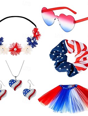 Set 250° anniversario USA Disco Anni '80 Copricapo Tutu Sottogonna con accessori Costume Per donna Halloween Carnevale Mascherata Giorno dell'Indipendenza 4 luglio Adulti Gonna Copricapo Altri