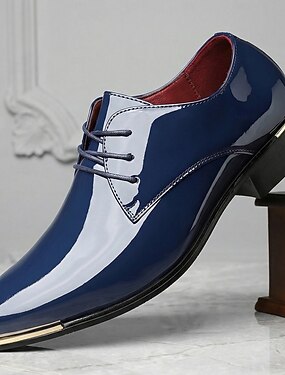 scarpe oxford blu da uomo in similpelle con finitura lucida: calzature classiche ed eleganti per eventi aziendali e formali