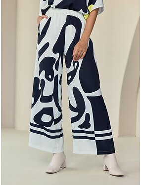 pantaloni da donna neri con stampa floreale, gamba dritta, in raso, casual, per tutti i giorni, primavera estate autunno