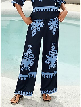 Per donna Femminile Pantaloni a Gamba Larga Lunghezza intera Raso Vita Alta Elegante Bohemien Vacanza Casuale Vacanza al Mare Blu marino Estate XS S M