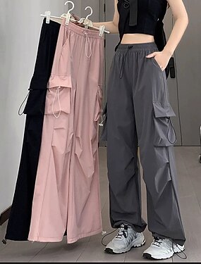 Per donna Pantaloni Cargo Pantaloni Dritto Moda Streetwear Lunghezza alla caviglia Naturale Tinta unita Tasca Confortevole Micro-elastico Sport & Outdoor Abbigliamento quotidiano Nero Rosa Verde