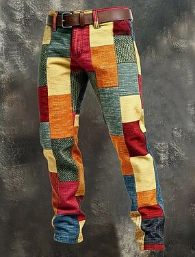Per uomo Blocco di colori Patchwork Pantaloni Eleganti Pantaloni Pantaloni da Abito Misura del girovita medio Vintage Retrò All'aperto Vacanza Vestibilità regolare Fronte piatto Pantaloni a gamba
