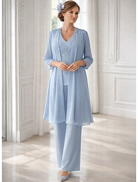 Completo pantaloni lunghezza al pavimento abito della madre della sposa maniche 3/4 scollo rotondo elegante semplice ospite di matrimonio con colore solido