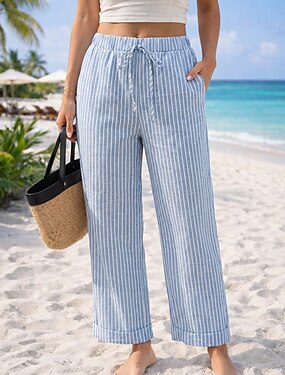 Per donna Pantaloni casual Dritto Vacanza Essenziale Lunghezza alla caviglia Vita Alta A righe A strisce Traspirante Inelastico Vacanza Formale Streetwear Aalbicocca Blu marino scuro Blu chiaro