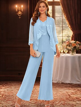Completo pantaloni lunghezza pavimento abito madre della sposa manica lunga collo a giro elegante semplice invitato al matrimonio con colore solido