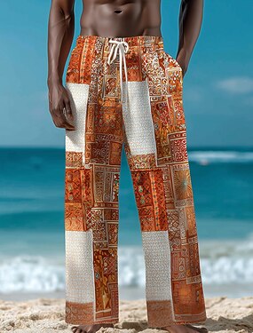 Per uomo Blocco di colori Patchwork Pantaloni Pantaloni casual Vita elastica con coulisse Hawaiano Etnico Vintage Retrò All'aperto Vacanza Ferie Tasche Laterali Pantaloni a gamba dritta Estate
