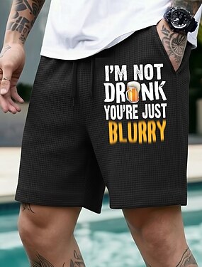 Per uomo Birra Bere Testo sfocato Pantaloncini Waffle Pantaloncini casual Pantaloncini strutturati Misura del girovita medio Divertente All'aperto Vacanza Coulisse elastica in vita Pantaloncini con