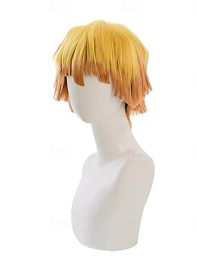 Parrucca Cosplay Gialla Gradiente Arancione Capelli Ricci Corti per Uomini Parrucche di Halloween