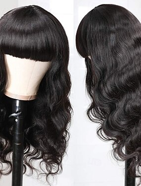 parrucche con onde del corpo e frangia, parrucche di capelli umani per donne nere, senza pizzo frontale, parrucche vergini brasiliane, senza colla, fatte a macchina, colore naturale