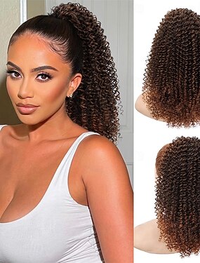22 estensione coda di cavallo lunga coda di cavallo biondo sporco avvolgente clip nelle estensioni dei capelli ricci ondulati fibra sintetica ad alta resistenza parrucchino finto per donne bianche