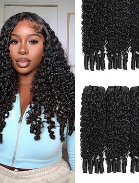 3 Pacchi Tesse per capelli Capelli brasiliani Riccio Ondulato naturale Ondulato Estensioni dei capelli umani Capelli umani Tessiture di capelli colore naturale / Capelli sfusi 8-28 pollice Nero
