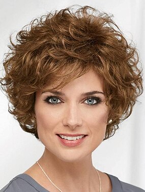 parrucche castane bionde ondulate ricci corte per le donne sostituzione dei capelli sintetici dall'aspetto naturale wi
