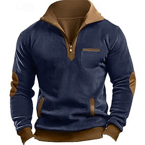 Per uomo Maglia Felpa con cappuccio Maglione Felpa con cappuccio abbottonata Nero Blu marino Blu Caffè Colletto Mao Semplice Patchwork Blocco di colore Sport & Outdoor Casuale Quotidiano Streetwear