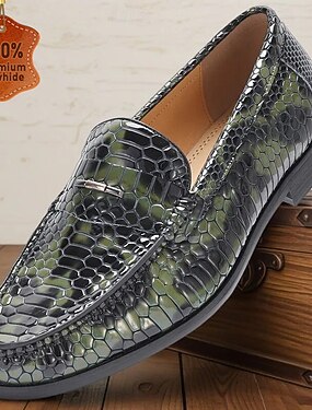scarpe da ballo da uomo - mocassini in velluto con motivo a pelle di serpente verde e nero per audaci dichiarazioni di moda