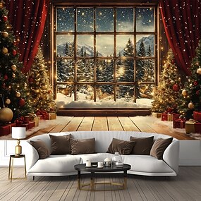 arazzo natalizio con babbo natale, albero di natale &elfo, decorazione artistica da appendere alla parete, arredamento per la casa, camera da letto, soggiorno o ufficio