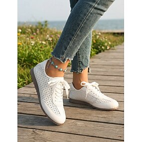 Sneakers bianche traspiranti da donna: scarpe casual leggere con lacci, comode e minimaliste, perfette per viaggiare, per l'uso quotidiano, per lo shopping e per le passeggiate all'aperto.