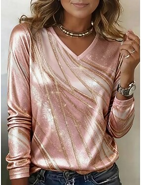 Camicia da donna Elegante Top Formale Camicia da lavoro Grafica Geometrica Elegante Stile Base Manica Lunga Collo Lavoro Feste Sera Abbigliamento Quotidiano Glitter Giallo Fucsia Arancione Verde
