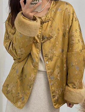 Per donna Cappotto Invernale Giacca imbottita Parka Caldo Confortevole Bottoni Casual Floreale Vacanza Casuale Abbigliamento quotidiano Uscire Regolare Collo alla coreana Vestibilità regolare Manica