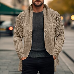 Per uomo Felpa Cardigan Maglione A coste Maglia Standard Lavorato a maglia Liscio Apertura anteriore Top caldi Contemporaneo moderno Da tutti i giorni Per uscire Abbigliamento Inverno Nero Rosa S M L
