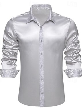 Per uomo Camicia Come la seta Camicia in raso Camicia casual Camicia con Bottoni Camicia da Ballo Semplice Matrimonio Affari Argento Manica Lunga Bavero Primavera & Autunno Tutte le stagioni