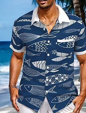 Per uomo Prodotti per pesci Creature marine Camicia hawaiana Camicia con bottoni Manica corta Hawaiano Ricorrere Da mare Per eventi Abbigliamento mare Estate Primavera Collo ripiegabile camicie con