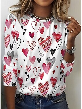 San Valentino Per donna Maglietta Stampato Grafico Vintage Moda Elegante Manica Lunga Girocollo Top Regolari Quotidiano Weekend bianco rosso Nero Bianco Rosa Rosso Estate Primavera