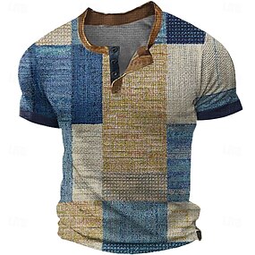 Per uomo Patchwork Maglia Henley Maglietta a nido d'ape Manica Corta Quotidiano Classico Retrò Vintage Casuale Sport all'Aperto Ferie Primavera & Estate Tutte le stagioni Blu Verde Marrone Grigio