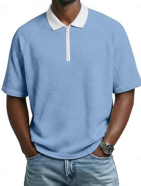 Per uomo Magliette Polo a Nido d'Ape Polo con zip Casuale Ferie Bavero Zip a un quarto Manica Corta Moda Essenziale Semplice Zip a un quarto Estate Primavera Vestibilità regolare Nero Bianco Blu