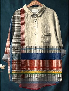 Per donna Camicia Blusa Patchwork Bottoni Stampato Grafico Geometrico Plaid Vintage Tropicale Quotidiano Manica Lunga Scollo a V Colletto a Camicia Top lunghi Quotidiano Abbigliamento mare