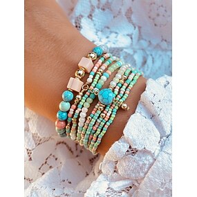 braccialetti da donna in resina e lega con perline multicolori in stile bohémien, alla moda e vivaci, perfetti per le vacanze e per l'uso quotidiano casual