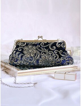 pochette da donna con paillettes – materiale in poliestere, vari colori, impreziosita da un motivo floreale metallico, include una catena per il trasporto a spalla, ideale per matrimoni, feste ed eventi serali