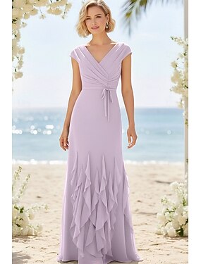 Tute eleganti da sera abito elegante estate lunghezza a terra maniche corte scollatura a V chiffon rimovibile con incroci