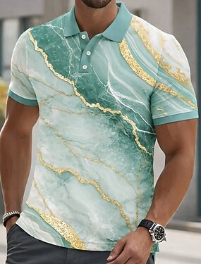 Per uomo Marmo Polo Manica Corta Magliette polo Camicie con Colletto Casual Athleisure Bottoni Primavera & Estate Blu Viola Verde