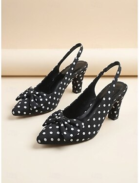 décolleté a pois retrò anni '50 da donna - nere &scarpe con tacco a spillo bianche con cinturino posteriore e fiocco per feste vintage, eventi rockabilly &balli di fine anno retrò