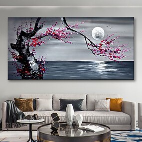 paesaggio dipinto a olio dipinto a mano wall art canvas vintage plum blossom luna paesaggio floreale / botanico moderno tela arrotolata (senza cornice)