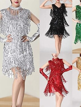 Danza Latina Vestito Nappa Paillette Per donna Performance Allenamento Feste Senza Maniche Alto Con Paillettes