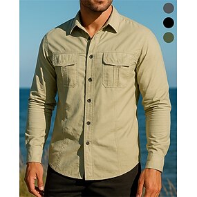 Camicie da donna 100% cotone, camicetta con bottoni, tinta unita, basic, casual, manica a 3/4, scollo a V, top regolari, per tutti i giorni, nero, bianco, rosso, kaki, estate
