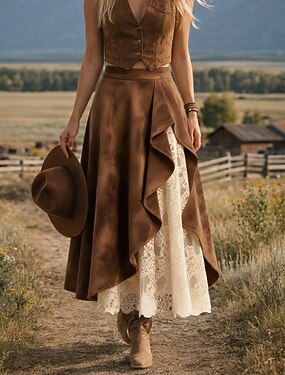 Per donna Gonna da vacanza Vintage Moda Casual Maxi Vita Alta Gonne Semplice Pizzo Patchwork Inelastico Quotidiano Streetwear Marrone Primavera Poliestere