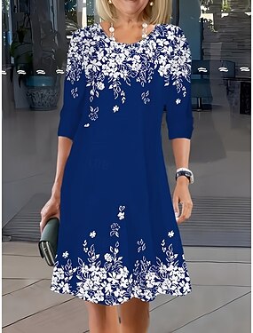 Linea ad A Asimmetrico Lunghezza Tè Vestito da Festa Abito da Cocktail Abito da invitata a nozze Abito da cerimonia per signora Manica 3/4 Scollo Tondo Elegante Alto Basso Ospite di nozze Compleanno